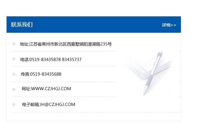 地址:常州市新北區友邦商務大廈1幢16、17層  電話:0519-85101652  傳真:0519-85112595  郵編:213022  網址:www_cz-jiayue_cn.imishen.com  郵箱:xiajifengaa@163.com